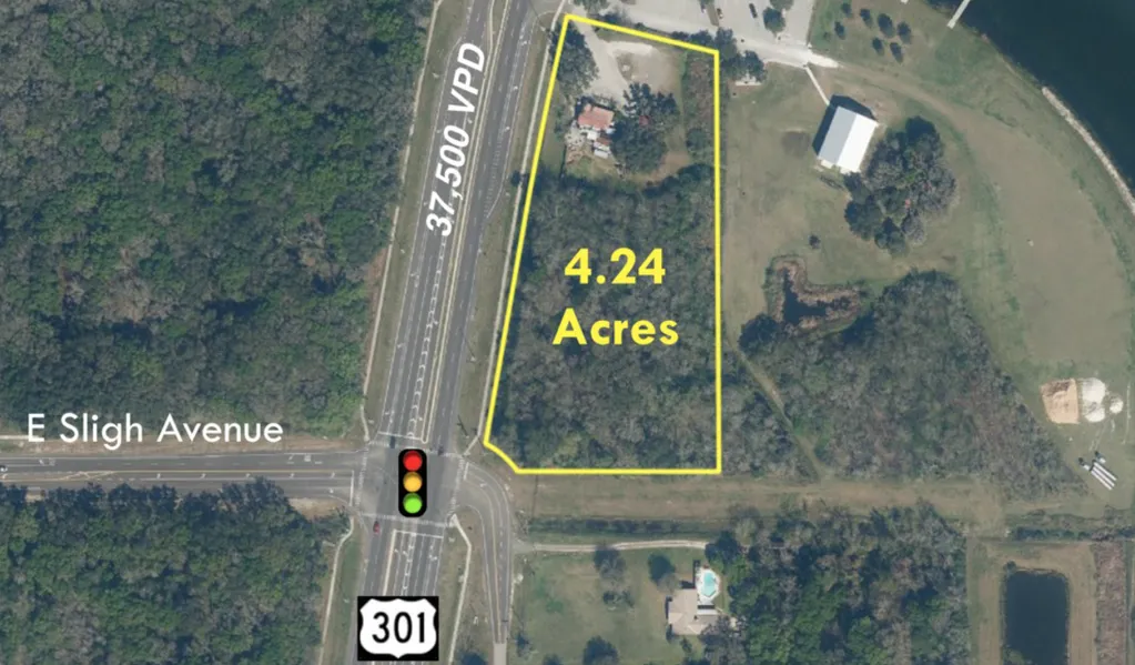 PROPERTY DESCRIPTION 4.24 acres located on the northeast corner of the Sligh Avenue/US 301 intersection. Excellent potential for commercial, office, or light industrial uses. Daily traffic counts for Sligh Ave and US 301 are 8,600 and 37,500 respectively (per FDOT). Recent developments in the immediate area include Mac Papers distribution center, Aero Simulations headquarters, and Casper Cold Storage and Distribution. Ideally located within five minutes of the I-4 / I-75 interchange. Approximately ten minutes to Port Tampa Bay and Downtown Tampa.