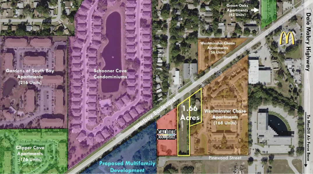 the property is MacDill Air Force Base, home to over 15,000 military personnel and their families. This site could support a multitude of uses including industrial, self-storage, townhomes, and automobile repair.