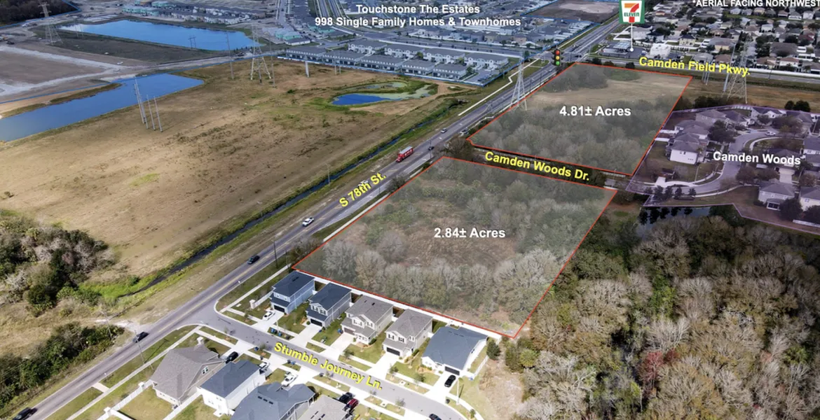 LOCATION DESCRIPTION - Located at the southeast quadrant of Camden Field Parkway and S 78th Street in Tampa, unincorporated Hillsborough County, FL. Only 15 minutes from downtown Tampa and the I-75 job corridor. Located halfway between downtown Tampa and Brandon with easy access to both I-75 and the Selmon Expressway. Across the street is a new subdivision being developed by Lennar called Touchstone containing a combination of single family homes and townhomes totaling 998 lots with clubhouse, fitness center, resort-style swimming pool and a community park.