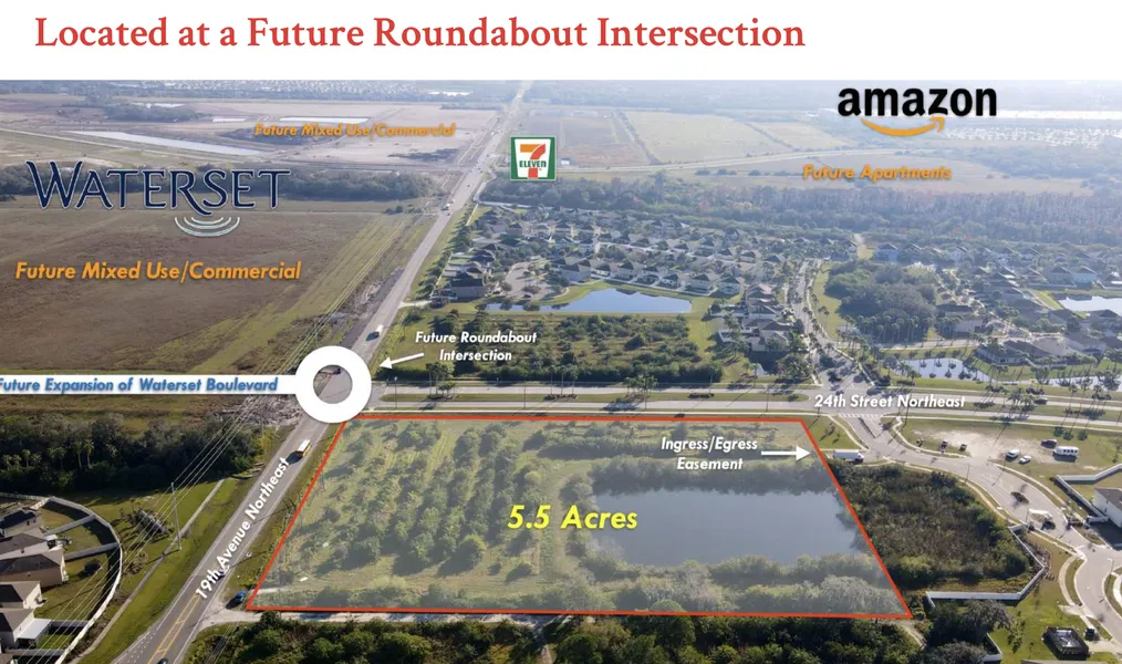 LOCATION DESCRIPTION - Located across from the renowned masterplanned community, Waterset, which is currently developing southward towards 19th Avenue Northeast. An expansion of Waterset Boulevard is planned to align with the 19th Avenue/24th Street intersection at which point a roundabout will be put in place.