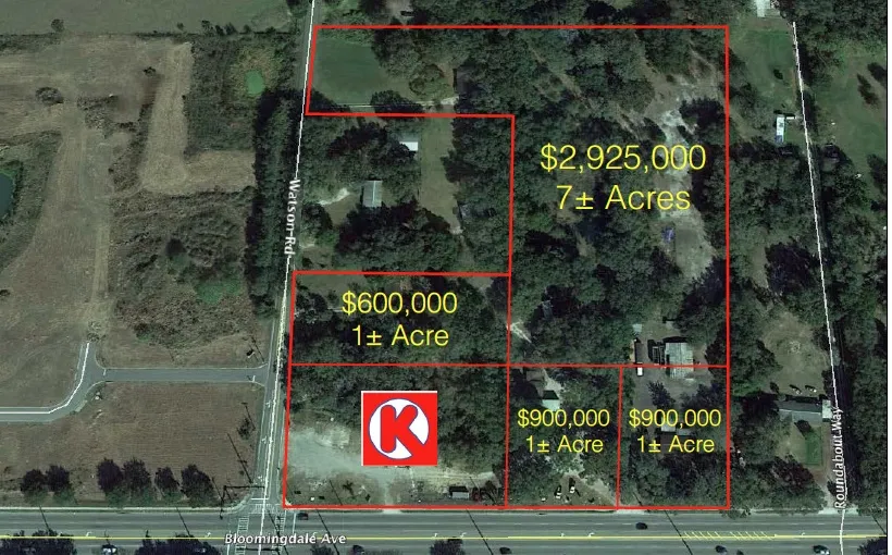 Approximately 9.88 acres is ideally located at the signalized intersection of Bloomingdale Ave and Watson Road in the heart of Riverview, FL. The site has been zoned for both commercial and residential uses and is ready to be taken vertical by a developer who understands the potential of this site in todays market. The 2 acres on the corner was sold to Circle K for a new gas station. The Seller would subdivide the property into outparcels or sell entire property.