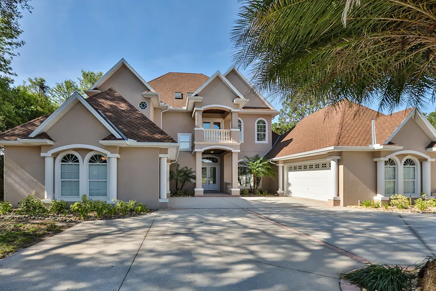 Welcome to your very own Private Estate with 5,630 sqft of immaculate living space w/ 5 beds, 5 baths, 4+ car garage, fitness room, elevator, pool & so much more. Unique, custom home has no HOA & is perfectly situated on a nearly 2 acre plot of land w/ gated entrance & access to a private owned lake. Enter the foyer through grand double doors w/ beautiful glass & iron work insets, into marble floors & volume ceilings. Natural light floods the home through nearly floor to ceiling windows providing picturesque views. Rich, elegant wood floors span length of main living space while crown molding frames out each room. Granite counters, elegant wood cabinets & stainless appliances complete the kitchen. Fitness room & game room are waiting for your personal touch. Take the stairs, framed out in wood & gorgeous iron work or take the elevator to the 2nd floor to your secluded bedroom hideaway. Master Retreat fit for a King & his Queen, complete w/ 2 custom walk in closets, huge private balcony & Master Bath. Laundry room on 1st & 2nd floor for added convenience & entire home has been prewired for all your gadgets & gizmos. Outside on the lanai, enjoy all the beauty that Florida has to offer in your pool & spa. Venture out to the private dock & take in serene views. Don't miss your opportunity to view, this is one home that must be seen! Home fully re-mediated of defective drywall & Certified. Property has been thoroughly inspected by a third party & found to be the same quality of homes without problem drywall.