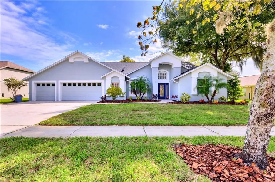 Enjoy owning a home that feels like you are on a permanent staycation in this beautifully designed POOL/WATERFRONT home that sits on a THIRD of an acre on a pond. This FULLY updated home offers 5 bedrooms 3 bath 3 car garage and has been prepared for that buyer looking for move-in ready convenience. The home is located in the Steinbrenner school district and the interior and exterior of this home has a ton to offer. This home includes 13ft tall VAULTED ceilings, NEW roof, NEW Samsung Black Stainless-Steel appliances, NEW water heater, NEW light fixtures, NEW nicely manicured landscaping, NEW interior/exterior paint finishes and MORE. Extend the living space outdoors where you will find a large screened-in patio providing ample outdoor seating space overlooking the resort style pool and backyard oasis. Make this place yours today!