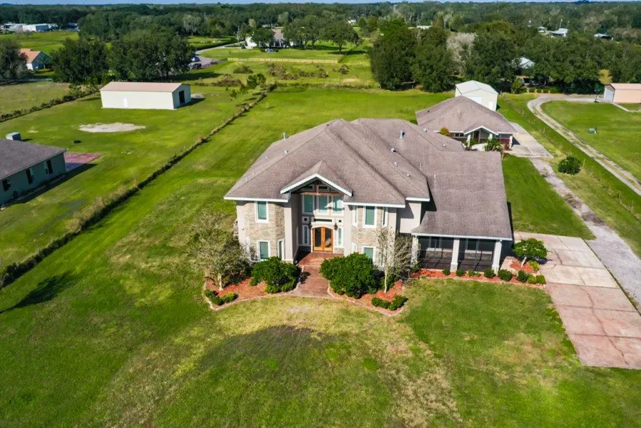 Featured in the February issue of Haven Lifestyles Tampa Magazine. Your custom built dream home awaits! Welcome to this amazing well maintained, two-story estate tucked away on over 2 acres in peaceful Plant City. Fabulous for the extended family as there is a separate 2/2+ bonus ranch home on the property for close proximity and privacy. Bring all of your toys and store them in the almost 1,000 square foot utility building or set up the perfect workshop. Upon entering the main home through oversized double doors, the soaring ceilings of the foyer and cozy living room with fireplace invite you right in. No expense was spared with attention to detail rich in quality and craftmanship throughout the home. The neighboring open formal dining room is perfect for family gatherings and celebrations. The incredible kitchen appointed with a breakfast nook boasts granite counters, stainless steel appliances, 42-inch cabinetry with endless storage, and generous island providing additional seating. The wonderful flowing floorplan allows the family chef perfect sightlines while entertaining to watch all the action from the adjacent family room. Additionally found on the main level are 2 flex rooms allowing options for additional bedrooms, guestroom, den or home office. A full bathroom is ideally located between these spaces as well as a half bath. Extend your living area into the enormous 2 story fully screened lanai for enjoyment all year round. The second floor offers a spectacular split plan with a catwalk as your guide to all bedrooms appointed with trey ceilings, recessed lighting and fans. Additionally you will find a full bath, laundry room and ample bonus room. Imagine the possibilities for this space! Room is currently equipped with white boards, essential for the home or virtual school environment and could also double as a theater or playroom. The owner's retreat is nestled away for optimal privacy and is appointed with a fireplace and generous balcony for ultimate relaxation in the morning or tranquility at day's end. The en-suite is appointed with a spacious garden tub, walk- in shower, dual vanities and huge walk-in closets. Come explore exquisite, peaceful country living with the convenience of being minutes away to shopping, dining, I-4 and FL-60. Schedule your private showing today and settle into your new lifestyle.