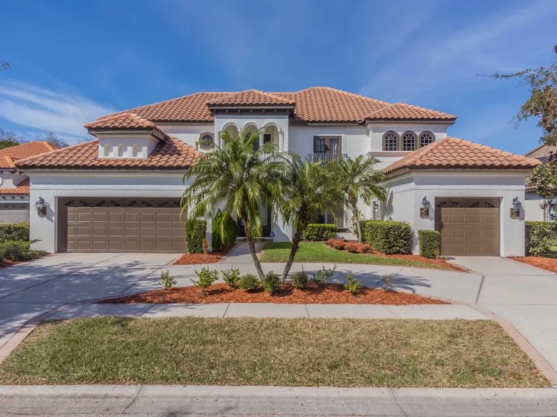 Situated in the primer gated Grand Hampton community on a tranquil lot with pond views, this spacious 2 story pool home features 5 bedrooms, 3 full and 1 half baths, dedicated office, bonus room and flex room. A true executive home, the layout easily adapts to formal entertaining or a cozy family oasis and offers functionality for multi-generational living. The 2-story grand foyer invites you with views of the winding stairway and effortless flow to the formal living and dining room perfect. The airy 2-story family room offers tranquil views of the pool with travertine overside deck, spa and pond beyond. The semi-open kitchen is perfectly situated whether acting as the heart of the home or a prep kitchen, you will enjoy access to the family room, patio and the formal dining space. A chefs dream, the kitchen features a large center island, walk in pantry, 5-burner gas range and separate oven. A first-floor master retreat features pool views, 2 walk in closets, en-suite bathroom with dual vanities, a walk-in shower, and separate soaking tub. An additional bedroom with en-suite bathroom, laundry room and half bath round out the first floor to service the pool. Upstairs find 2 additional bedrooms, full bath, dedicated office, bonus room and flex space. Outside, the covered lanai overlooks the screened and heated pool and spa area and tranquil pond. Additional features include full 2 car garage with attic ,and a separate 1 car garage. the community includes 24/7 security guards, a premium fitness center, playground, sparkling pool, tennis courts and so much more.
