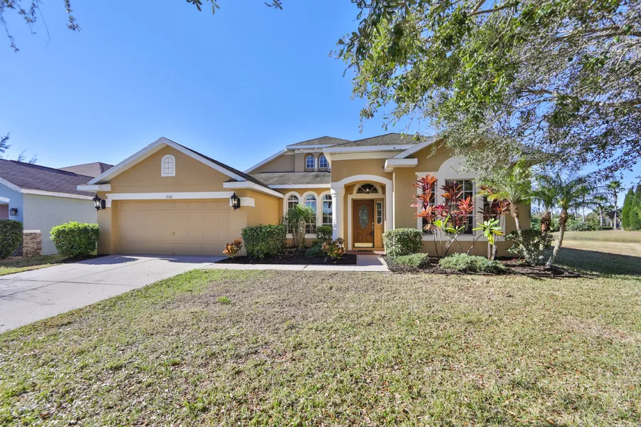 Exquisitely designed and spacious easy-living split bedroom home that features 3 large bedrooms and 2 full baths on peaceful cul-de-sac with tranquil pond view. This open plan home with soaring vaulted ceilings, crown molding throughout, carved niches and open architectural ledges presents an appealing Florida-style living space. The living room, dining room, and master have been newly carpeted and the entire home presents nicely with its neutral color scheme. Walk in the front door to a decorative ceramic tiled floor foyer which leads to the main living area. To the right is a perfect home office area or 4th bedroom followed by a charming open sitting room. To the left is the formal dining area featuring a tray ceiling, niches and arches to provide a sense of privacy with an open feel. Move forward to a capacious welcoming living room with sliding glass doors leading to the patio. The ample ceramic tiled kitchen with breakfast nook and eat-in counter space includes stainless steel appliances with a brand-new range and walk in pantry. It boasts 42 cabinetry and a decorative coordinated tiled backsplash and matching tiled under counter space. The master retreat encompasses an entire wing of the house with a sizeable bedroom and ensuite bathroom complete with new Jacuzzi garden tub, double sinks, shower, enclosed water closet and substantial walk-in closet. The two additional bedrooms are generous in size, have their own walk-in closets and share a full bath. This home also includes a laundry room with newer washer and dryer and two car garage with space for extra storage or third car. The exterior of the home has been recently refreshed with newly painted sides and rear, windows re-caulked as needed and landscape vitalized with mulch. You will enjoy privacy in the serene backyard with no rear neighbors and pond view and relax while barbequing on the porch. Attractive mature landscaping surrounds the well-maintained exterior of the home located in the highly desired and picturesque Covington Park community!