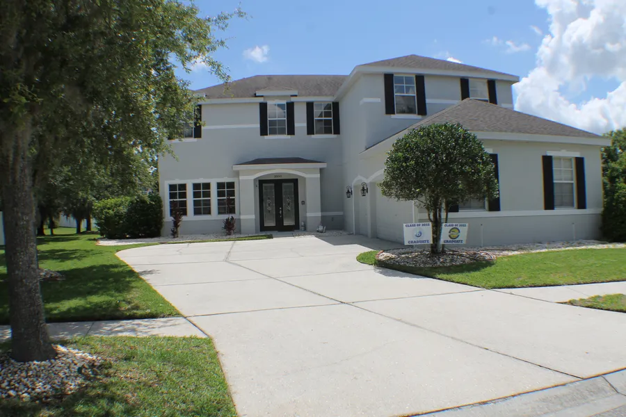 SELLER MOTIVATED - Beautiful home on a quiet, oversized cul-de-sac home site. This home boasts 6 BR/5 BA/3.5CG. This bright home has a large, screened lanai with peaceful view of pond & conservation. The first floor includes a bedroom w/ access to the large downstairs full bath. Home comes with intercom/entertainment system. Upgraded kitchen with 42" cherry wood cabinets, granite, and kitchen island with large eating area & family room. Formal living & dining room are a few steps from the large two-story foyer complete with decorative glass front doors. The large upstairs master bedroom has a nice sitting area w/ large window. The dual walk-in closets lead to the spacious master bath that includes a jetted tub with his and hers separate vanities and sinks. The large bonus room could be used as a second MBR or the in-law suite as it has a bath and walk-in closet. Incredible amenities and ...