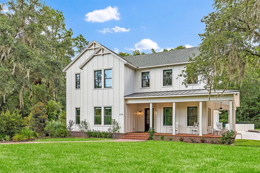 i. Gorgeous, modern farmhouse residence situated on a double lot of 2.1 acres total in the gated Liberty Oaks community! This bright and spacious layout was built in 2019 and boasts five spacious bedrooms, all with their own en-suite bathrooms, an additional powder bathroom with pool access, plus an executive office. The inspiring entrance foyer features a striking wood floor with a custom accent, which leads into the open great room highlighted by vaulted ceilings and two large sliding glass doors with access to the pool area and covered patio. The sophisticated chef's kitchen is centered around a large island with key details such as floating shelves, side by side Sub-Zero refrigerator, 6-burner Viking gas range, pot filler faucet, walk-in pantry, oversized farm sink, two toned shaker wood cabinets and quartz countertops. The additional stylish coffee bar features a built-in beverage f...