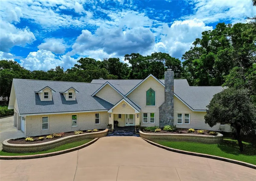 One or more photo(s) has been virtually staged. As you enter through the private gates, you'll immediately recognize the uniqueness of this property. This spectacular 6,759 square foot estate home sits on 2.41 acres, is hurricane resistant, outside of a flood plain, in the heart of everything-shopping, restaurants, golf courses, plus easy access to I-4, Crosstown expressway, and I-75. The property features 6 bedrooms, 6 full baths, and 2 half baths, with every bedroom having its own bathroom. The home boasts a formal 2 story living room, a family room with a marble fireplace, and large dining room. The true gourmet kitchen includes 2 ovens, a gas stove with a pot filler, a side-by-side built-in refrigerator, solid wood cabinets, and granite countertops. There's also a spacious breakfast nook overlooking the large, pool and spa. The first-floor primary suite has dual walk in closets, a large ensuite, private office/den and screened in porch. The second story has 4 additional bedrooms, all with oversized closets, with the fourth bedroom having private access to the garage/outside and plumbing for a kitchenette making it the perfect option for a secondary private living space. Additional features include plenty of storage space throughout and updated designer finishes such as oversized marble tile in the main living areas and on the fireplace. Outside, the landscaped yard includes space for a single horse stable and a large pool with a heated spa. The estate also has a 3-car attached garage and a 2-car detached garage which would be an easy conversion to a mother-in-law suite. Both the main house and the detached garage are constructed of imported brick with cinder block and poured concrete inside, ensuring exceptional durability. The newer roof and double-pane windows further contribute to its energy efficiency. This extraordinary property is built to last, combining luxury and practicality with features perfect for both entertaining and everyday living.