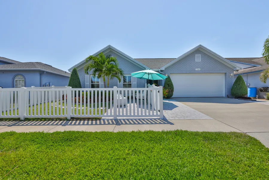This lovely three-bedroom, two-bathroom single-family home in Apollo Beach has been beautifully updated. The landscaping at the front of the home creates an inviting entrance. Inside, there are beautiful tile floors throughout the home and outside to screened patio. The living room highlights vaulted ceilings, upgraded ceiling fan and a sliding glass door out to the patio. The split floorplan features two spacious bedrooms and a flex room that could be a third bedroom, den, dining room or office. The primary bedroom features plantation shutters, a walk-in closet and a beautiful ensuite bathroom. The kitchen is elegantly renovated, featuring a high ceiling, SS appliances, soft-close white cabinetry, quartz countertops, and a stylish glass backsplash. The kitchen window looks out into the backyard, with no backyard neighbors. The screened patio includes sunblock shades and a mounted TV, suitable for relaxing with your morning coffee or an evening cocktail. The rear and side yards feature paver patios, a fenced perimeter, meticulously kept landscaping, and a retractable shade. Roof replaced in 2020, Impact windows (all but 3) and Impact sliding glass door in 2024, AC in 2023, irrigation system, electrical and plumbing updated in 2020. Apollo Beach enjoys Circles Waterfront Restaurant, Finns Bar & Grill, Alpha Pizza and Apollo Beach Nature Park and more. Interstate is close making commuting to Tampa or Sarasota easy. Close to schools, shopping and more. This affordable home has no CDD or HOA fees and is move in ready. Call today to schedule your private showing of this tastefully renovated Florida home.