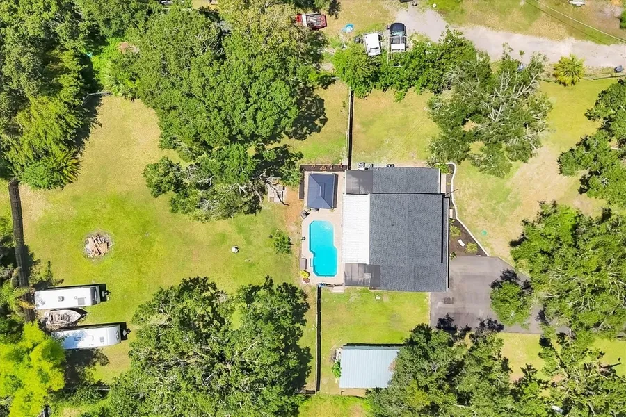 Under contract-accepting backup offers. Priced below market - $80K REDUCTION! Motivated owners! NO CDD OR HOA! This home has been REMODELED top to bottom with a new roof, new flooring, refinished pool & new pump & skimmer, newer kitchen & AC (2022). This home feels like BRAND NEW! Tired of living in tight spaces in developments? This large 4 bedroom 3 1/2 bath home sits on a beautiful, QUIET & PRIVATE 1-ACRE FENCED LOT with security gate. Feel like you're off-grid with a newer well and septic (no water/sewer utility bill)! Bring your toys, animals, hobbies and live your life close to shopping and dining and new subdivisions, but away from the hectic city life! HARDIE BOARD SIDING - "Fiber cement siding formulated to offer superior performance"! Relax in the heated, in-ground pool with cabana; WORK FROM HOME with two - 1st floor private offices; bring a guest to live in the upstair...