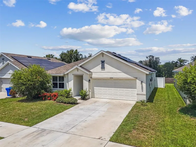 Lower your bills and raise your quality of life—solar panels could make your next home a smart move! This 3BR/2BA home features a stylish kitchen with GRANITE COUNTERTOPS, stainless appliances, and REVERSE OSMOSIS SYSTEM, plus durable water-resistant VINYL PLANK FLOORING throughout. The primary suite enhances privacy as it is split from the guest rooms, and the primary bathroom offers DUAL SINKS. Enjoy a FENCED backyard with WATER VIEW! The community brings even more with a POOL, clubhouse, playground, and DOG PARK. Roof, AC, and Hot Water Heater all just 4 years old. Book your appointment NOW!