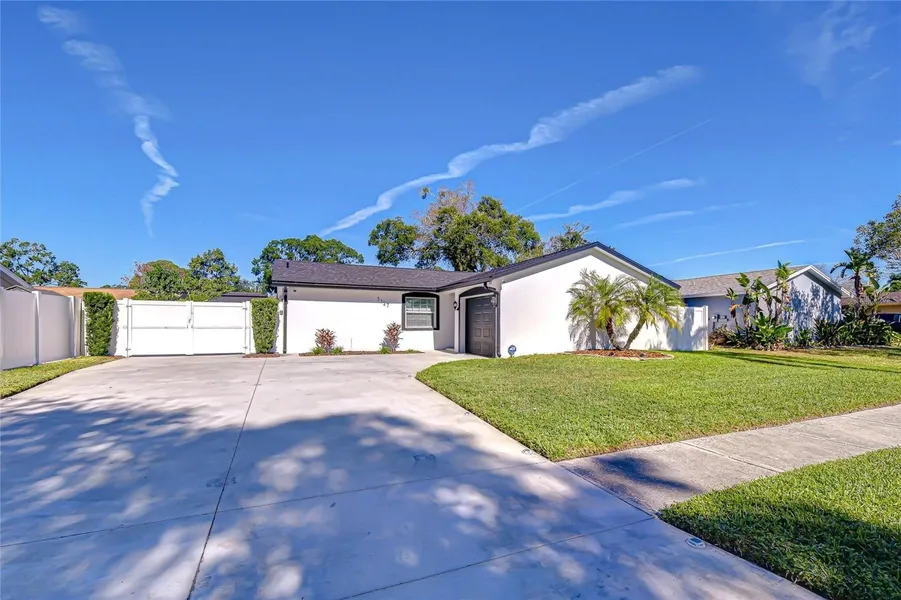 Under contract-accepting backup offers. Welcome home to this light-filled 3-bedroom, 2-bath single-family home located in the convenient CARROLLWOOD MEADOWS community. A single-car garage plus a detached 21x16 structure make this property a car lover’s dream, offering expansive parking and versatility RARELY FOUND IN THIS AREA. The detached structure, built in 2022, is FULLY INSULATED and EQUIPPED w/ ELECTRICITY on a separate panel, ideal for a workshop, studio, or additional storage. The driveway was replaced in 2022 and provides generous parking along with a covered pergola, perfect for vehicles, hobbies, or entertaining.