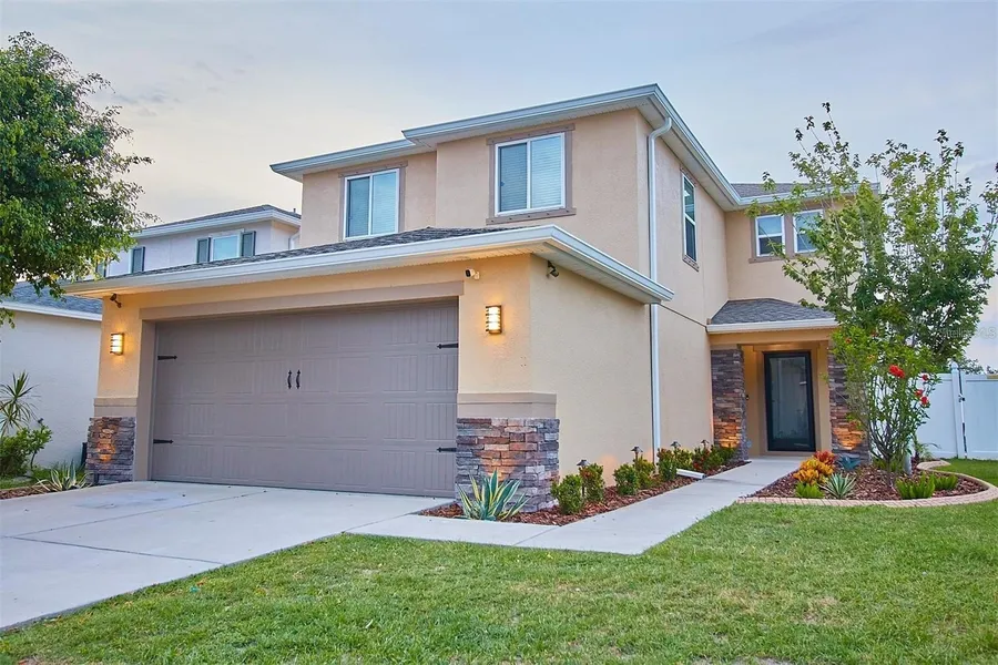 Welcome home to this beautifully updated 5-bedroom, 3-bathroom residence in the heart of Riverview, ready for its next owners. From the moment you step inside, you’ll appreciate the open-concept layout, rich wood flooring, and abundant natural light that make this home feel both spacious and inviting. The fully renovated kitchen is a true centerpiece, featuring stylish finishes, stainless steel appliances, and a walk-in pantry, perfect for everyday living and entertaining. The first floor offers a convenient bedroom and full bathroom, ideal for guests or multi-generational living. Step outside to your private screened-in lanai and heated saltwater pool, designed for relaxation and entertaining year-round. The saltwater pool is ideal for its ease of maintenance, reduced use of chemicals, and it is softer for your skin. The low-maintenance backyard includes pet-friendly turf and doggy doors, making it as practical as it is enjoyable. Upstairs, you’ll find four additional bedrooms and two full bathrooms. The spacious primary suite is a true retreat, complete with a spa-like bathroom featuring dual vanities, a garden tub, a separate shower, and an oversized walk-in closet. The large laundry room provides plenty of storage and organization space. Bonus features include exterior security cameras, an alarm system, and a Sensi smart thermostat for added comfort and peace of mind. The home also comes equipped with solar panels so say good bye to your TECO bill! The home’s prime location truly sets it apart — the community pool is directly across the street, and the neighborhood is quiet and welcoming. Enjoy unmatched convenience with easy access to schools, shopping, dining, gyms, and major roadways. This home offers the perfect balance of comfort and connectivity. This exceptional home checks all the boxes and won’t last long. Schedule your private showing today!