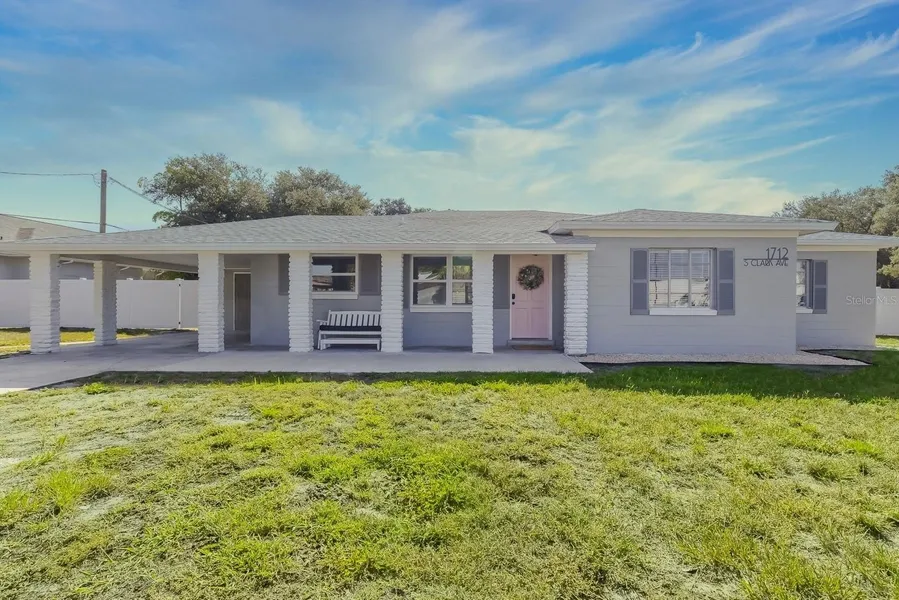 Located in the heart of South Tampa's Palma Ceia West, this beautifully remodeled mid-century modern ranch-style home is a true gem. Situated on a SPACIOUS 0.37-ACRE LOT, where you can bring your recreational toys or build a pool. Currently, the expansive backyard is completely fenced and features a 12’x40’ SUPERIOR SHED to accommodate all your storage needs. The home boasts 3 bedrooms, 1 full bathroom, and 1,484 square feet of heated living space, with a layout that feels remarkably larger. As you arrive, you'll be greeted by an oversized carport with extra storage, brick-wrapped columns, and a charming covered front porch. Inside, the open layout is immediately inviting, with LVP wood-look flooring and ample recessed lighting. The remodeled kitchen, overlooking the main living areas, is a chef's dream with quartz countertops, white shaker cabinets topped with crown molding, a farmhouse...