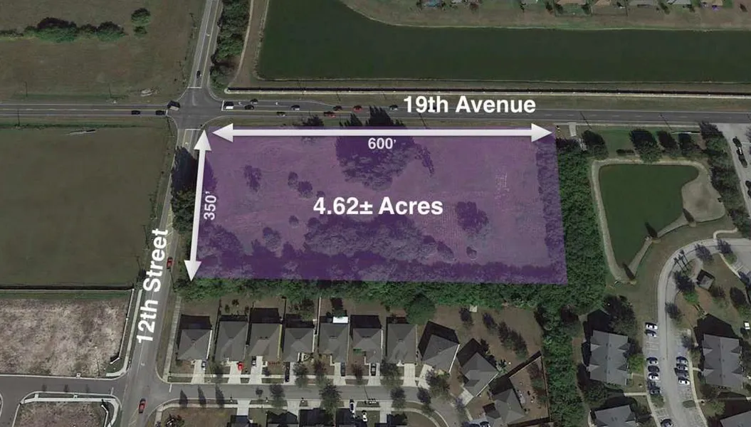 PROPERTY DESCRIPTION The opportunity is to purchase 4.62 acres located at the southeast corner of 19th Avenue and 12th Street in Ruskin. It's adjacent to Venetian at Bay Park and Irongate Apartments. The property is currently zoned AR with a Future Land Use of R-6. It features over 600 feet of frontage on 19th Avenue and over 350 feet of frontage on 12th Street.