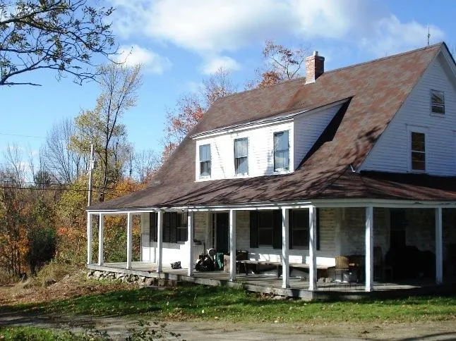 Early 1800s cape needing restoration surrounded by 104.8 acres of land on a dead-end country lane. Features include Christian doors, wide board wainscoting, Indian shutters in one room. Some work done-new bath, circuit breakers, 1999 furnace just serviced, roof and chimney repairs. Attached garage built from barn board, tractor barn, and more. Land on both sides of a country lane, hillside view and pond frontage. 30 Minutes to the airport.