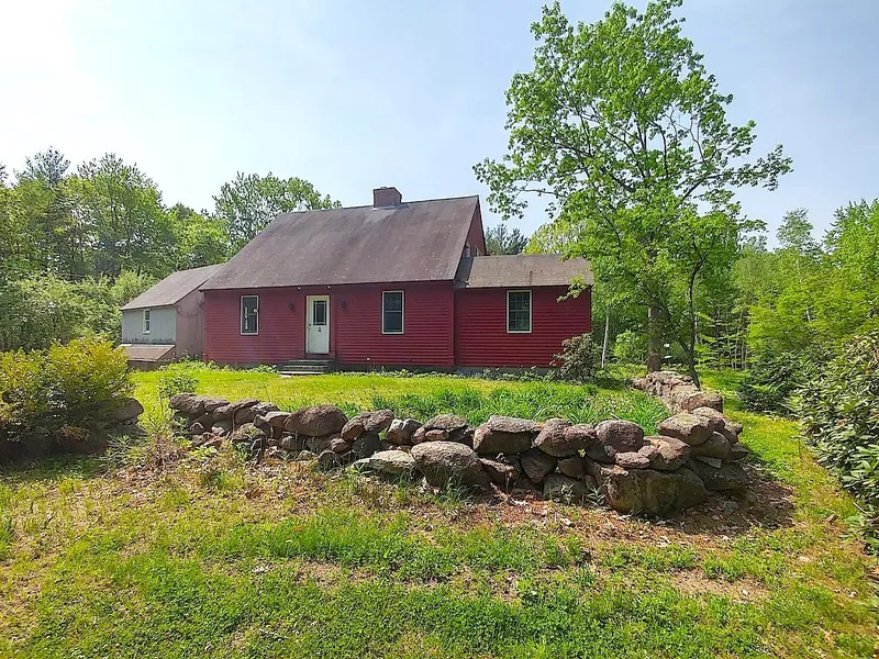 Split Birch Farm is a custom reproduction salt box style home with att. 2 bay garage sited on almost 25 private acres. Thoughtfully constructed in 1980 with energy efficiency and quality in mind, the 2-3 BR/2 BA house has wide pine floors, wainscoting, built-in shelving, crown molding and brick FP in the living room. Great greenhouse and bonus room! 1 stall barn for a horse or sheep. Views, fruit trees and perennials, abundant trail access.
