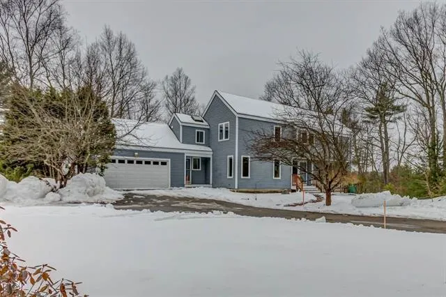 South Hollis Contemporary by Acorn Structures. Modern updated kitchen with White cabinets with soft close doors and drawers. Granite counters Stainless appliances. Vented hood fan. New Flooring. 2 story Rumford fireplace. Central A/C. Southern Exposure of 70 ft+/- deck. Private location. Vaulted ceilings . 3 season porch. First floor bedroom/office with bath. Lots of natural light. 2 car garage. Paved driveway lined with Mature trees and Lighting. Owner/Agent. Showings Start 1/25