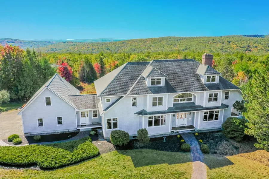 Spectacular Home with Million Dollar Views on 21 Acres in Amherst! Captivating contemporary hip-roof colonial on a private hillside surrounded by mountains. Light-filled throughout, the foyer opens to two-story windows with breathtaking views. Perfect for entertaining close friends or a large gathering, this exceptionally well designed home offers multiple formal areas with a two-sided wood fireplace, two family rooms and an office or guest bedroom on the first floor. The master bedroom offers a fireplace, ensuite bath and large balcony to enjoy the sunset. Four bedrooms and a family room upstairs with a walk-up third level. Attached three car garage with unfinished bonus room above (office with a view?) plus enormous circular drive for guests. All the bells and whistles including geothermal heating and cooling, irrigation and security systems. Over 7,000 square feet total, including unf...
