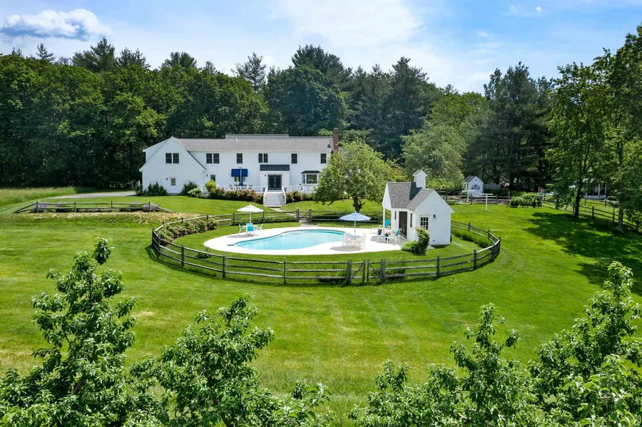 Lovingly cared for and meticulously maintained inside and out, this home has it all. The tree lined extended driveway leads to a beautiful 3,767 sf Custom Built home sitting on 3.68 acres. The views are breathtaking, overlooking landscaped and mature perennial gardens, blueberry and raspberry patches, and abutting a mature apple orchard. An oversized deck for gathering steps down to a stone path that leads to the gunite swimming pool, and custom pool cabana with seating area. The main level features an oversized entry foyer, that leads to the first floor in law/au pair suite with wheelchair accessible doors, and curbless shower entry. The open concept eat in kitchen, has granite countertops, custom cabinets and inviting center island for gathering. The dining room flows directly off the kitchen for entertaining. The spacious fireplaced family room has expansive views through the bay window to the backyard. Spacious second floor master with double closets, and remodeled master bath has soaker tub, tiled shower, double sinks. Two additional bedrooms, with shared bath. An elegant spacious home office features an executive desk, two seating areas, wet bar, and built in bookcases. A gardeners delight, with custom gardening shed and low maintenance raised beds for all your vegetables. Additional features include radiant heating, hardwoods throughout, whole house Generator, Smart Home features, central vac, high velocity a/c system, first floor laundry, and basement workshop.
