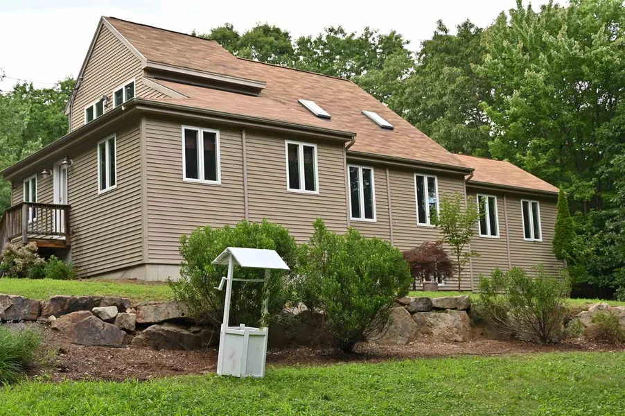 Back on the Market and the Seller is Motivated. This Contemporary Cape style home resides on 2.3 private wooded acres and features an easy floor plan and layout for everyday living or entertaining inside or outside on those special occasions. As you enter the home through the foyer/mudroom, then proceed into the kitchen where you will see the European style cabinets that align the walls on the top and bottom, a new Stainless Steel Gas Range and new Split Fridge with a lower freezer, and a Stainless Steel Dishwasher, with lots of counter space. The Dinning Room is open to the kitchen with lots of natural light, a vaulted ceiling, and a serving area with storage and a mini fridge. The centralized living room offers more space with an open cathedral ceiling to the 2nd floor and access to the Family Room with vaulted ceilings, and a slider to the patio area. The first floor also offers the 1...