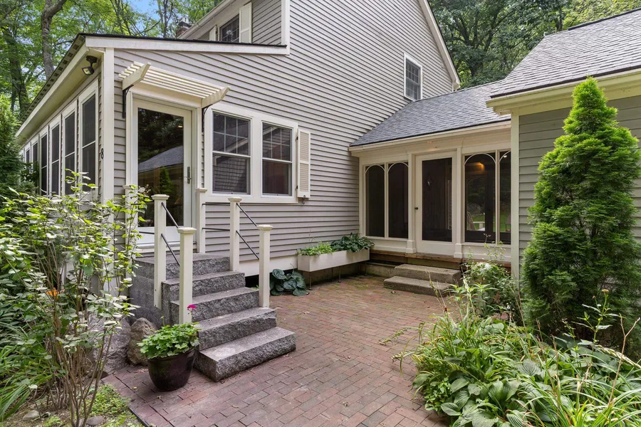 Fabulous 3 bedroom 2 bath colonial sits on 1.5 acres in established cul-de-sac in Amherst NH. This charming home is anything but cookie cutter! The custom eat-in kitchen has granite counters, island, fireplace, updated appliances and wide open view overlooking the peaceful backyard. The living room off the kitchen features a gas fireplace, wood floors and overlooks the newer addition of a four-season room, featuring bamboo floors and a wall of Anderson windows overlooking the front yard. The second floor has 3 nice size bedrooms and shared bathroom. The finished basement is perfect for an additional family room with tile floor and laundry area. A screened breezeway with vaulted ceiling sits perfectly between the 3 car garage and side entrance to the house. If you love the outdoors, step into the tranquil backyard! You will love the rock walls, plantings, and water feature that is calming...