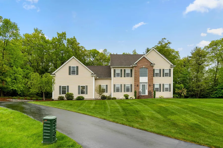 Welcome to this large stunning Colonial sitting princely on your manicured acre+ lot at James Way Estates. Entering the two-story foyer your eyes take in the red oak flooring throughout the first floor. There is an office, dining room, living room, large kitchen and dining nook, Also, a playroom or use as a 1st fl. bdrm, and a half bath. Kitchen features granite counter-tops, high-end SS appliances, a Thermador induction cooktop to speed up weekday meals. Upstairs a primary bedroom with a large walk-in closet, full bath to include walk-in shower, jetted tub, dual sinks. Down the hall is another bath, 3 bdrms, a teen hang-out space and the great room, currently used as a gym. Laundry off teen space. Home has hydro heat & cooling,2 air handlers, heated 3 car garage, , sprinkler system, irrigation, FP wood stove insert, new well tank & pump, passive radon system, Culligan water filtration. ...
