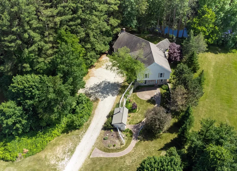 Pristine, thoughtfully designed contemporary ranch with efficient layout & quality features sitting on 1.5 acres along the Souhegan River. Large & bright living room with cathedral ceilings, floor-to-ceiling hearth w/ woodstove and Hickory hardwood floors, a spacious kitchen w/ Viking gas range, walk-in pantry/ laundry, and NY Blue Stone tile floor walks out to a stunning patio overlooking the river. Single floor living with 2 bed/ 2 bath PLUS office has much to offer w/ the Primary Suite featuring a large walk-in closet, generous size BR, ceramic tile shower and radiant heated floors. LL is a beautiful WALK-OUT w/ finished bonus rooms and over 1,100 sqft unfinished workspace for those hobbyists!! Enjoy the privacy of this landscaped WATERFRONT property as you sip your coffee or cocktails on the spacious covered patio. Established apple, peach, and pear trees line the driveway, an herb garden, lilac bushes, and many perennials surround the home. ADDITIONAL FEATURES: Built-in Central Vac on both levels with hoses to reach throughout the house; compressor with quick-connects in convenient locations; built-in kegerator in pantry and additional mini-fridge & freezer; external doors to stack wood/ remove ashes w/o trekking through the house; utility sink in workspace; 8x15 storage shed; dug well could be used for irrigation and wiring along driveway for potential to add lighting. OFFER DEADLINE, 6/27 at 10am.