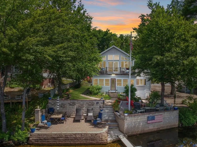 Welcome to "Lake Life". This 6 room, 3 bedroom, 1.5 bath waterfront home on Baboosic Lake has so much to offer. Outside there are beautiful views from the 2 separate patio areas, a large dock and a nicely landscaped lot. The main level features beamed ceilings throughout, a fully applianced kitchen that opens to a living room, 2 bedrooms and a spacious family room. The second floor primary bedroom with sliders to private deck overlooking the lake also features a walk in closet and second bath. There are also many updates to home including central air conditioning, a newer FHA heating system and electrical panel upgrade. Across the way is a separate lot with an oversized 24x44 garage includes a lift and is perfect for the car enthusiast.