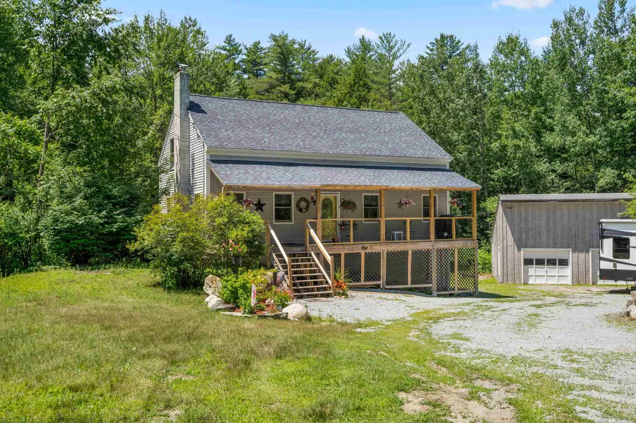 Check out this beautiful 3 bedroom cape situated on 2.40 acres in No. Weare. Located on a quiet, dead end road yet convenient to Concord and I-89, this home has it all: Privacy, wildlife and close to plenty of snowmobiling trails. This home features hardwood flooring, a farmer's porch *with the cutest yellow front door!*, a screened-in back porch, first floor laundry, a newer furnace (2020), an on-demand water heater and 2 garages - four stalls in all! Upstairs in the detached garage is additional space that can be used for all of your needs. This great home is ready for its next owner!