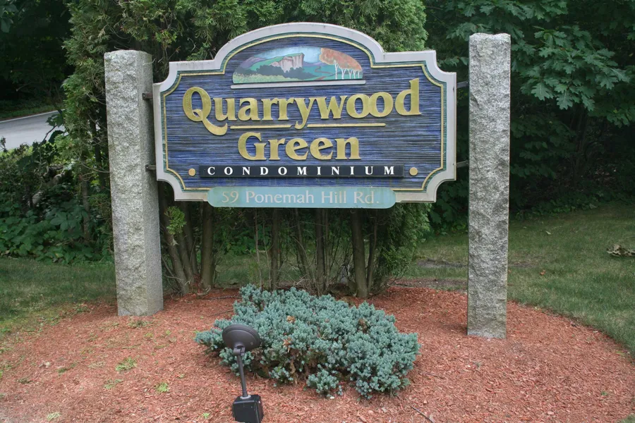 Wonderful 3rd floor garden style condo at Quarrywood Green, a nice country setting yet close to 101A and all its conveniences! Brand new vinyl plank flooring has just been installed throughout the unit, all appliances in the kitchen are less than 2 years old and the stackable washer/dryer will be delivered prior to closing! The kitchen has plenty of cabinet/counter space and opens to the open concept living/dining room with sliders to a deck. Primary bedroom with full bath. A super end-unit overlooking the woods! Quick close is possible.