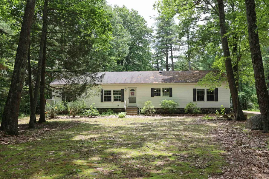 Temple is a quaint New England town conveniently located approximately 15 minutes from amenities in both Peterborough and Milford. Yet, it feels like a step back in time with less of the everyday hustle and bustle. The approach to this 2006 ranch style manufactured home is via the level and slightly curved driveway framed by native mountain laurel. It is set upon a 6.8-acre lot with beautiful trees and a nice level and open yard area. The home, with 1728 sq. ft. of living space, offers an open concept kitchen-dining-living-family room area. Two bedrooms and a family bath are on one side of the home. The primary bedroom with a private bath is separated by the living room space. There is also a utility room with pantry, washer/dryer and utility sink which has an exit door on the side of the house making it a great mudroom for entry into the home. A rear deck overlooks the back yard, and la...