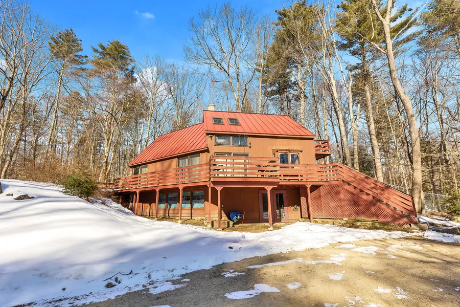 Just minutes from the town center, off of a quiet country road, sits this delightful post and beam contemporary cape on 14.23 acres. This 1.5 story home boasts a picturesque view of two man-made ponds amidst a wooded backdrop. Additionally, the property encompasses a partially fenced yard and expansive open fields. Built in 1984, the home is adorned with vertical pine siding and boasts a standing seam metal roof, evoking a rustic charm. Inside, an open concept design welcomes you with soaring ceilings and skylights, creating a bright and airy atmosphere. The first floor is designed for flexibility, featuring a convenient shower bath and an adjacent bedroom. Upstairs, a spacious primary bedroom suite awaits, complete with a full bath and loft area, offering a cozy retreat. The full walkout basement provides ample storage space and presents future expansion possibilities. Overall, this pro...