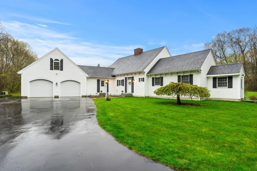 This custom-built 3-bedroom, 2.5-bathroom home in beautiful New Ipswich, NH, awaits its new owner. With gorgeous curb appeal and a meticulously landscaped front yard, you'll feel welcomed home immediately. Step into the foyer and be captivated by the Carlisle-wide plank wood floors illuminated by abundant natural light. The expansive Family Room, featuring a beautiful hearth, custom built-ins, indirect lighting, and full-glass French doors, offers multiple uses and seamlessly brings the outdoors in. The eat-in kitchen is a chef's dream, equipped with granite countertops, a gas range, and ample storage. Open to the dining area, it's perfect for entertaining, with a second gas fireplace adding ambiance to any gathering. The first floor also boasts a generously sized bedroom with an en suite bathroom, a mudroom entry with direct access to the 2-car garage, a half bathroom, and a laundry are...