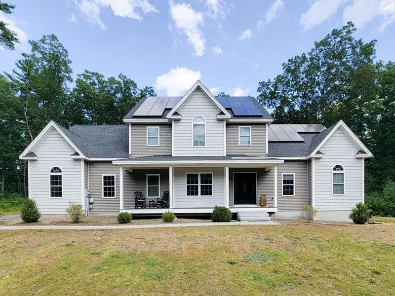 You won't want to miss this Beautiful Craftsman Colonial on 5 Private Acres, tucked away at the end of a quiet, newly paved road. This stunning 3,581 sq. ft. colonial home offers the perfect blend of privacy, space, and quality. The home features four oversized bedrooms, including a luxurious primary suite on the first floor, which features a tray ceiling, two walk-in closets, and a spa-like bath with dual vanities, soaking tub, and separate shower. Inside, you'll find a bright, open-concept layout with 9' ceilings, hardwood floors, crown molding, and soaring vaulted ceilings in the great room and foyer. The wall of windows floods the living space with natural light, while a gas fireplace adds warmth and charm. The chef's kitchen, complete with granite countertops, stainless steel appliances, and a center island, flows seamlessly into the great room?perfect for entertaining. A formal dining room, complete with wainscoting and crown, completes the main level. Upstairs, you'll find three additional spacious bedrooms plus a versatile bonus room?ideal as a media room, home office, or playroom. Step outside to the maintenance-free deck overlooking the private backyard, ideal for a future pool or simply enjoying the peaceful setting. Additional highlights include public water, on-demand hot water, central air, a generator hookup, and Solar Panels with a transferable warranty This home combines timeless style, modern amenities, and plenty of room to live, work, and play.