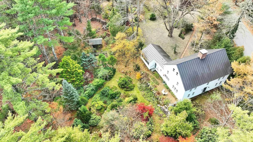 Step inside the historic Tristram Collins House, where 21st century amenities are wrapped in an antique package. Set on 19.9 acres of pristine gardens, lawns, and sprawling woodlands, this peaceful country retreat is less than thirty minutes from both Concord and Manchester, NH. The home features a standing-seam metal roof, a nearly new heating system, and four working fireplaces, including one with an efficient woodstove. Divided-light windows, raised paneling, period built-ins, and a brick hearth with an antique pot crane add authentic period character. In the kitchen, the household cook will appreciate the dual-fuel Wolf range with overhead vent and two Bosch dishwashers. Upstairs, two front bedrooms (one with a walk-in closet) overlook the picturesque grounds, while two additional rooms offer flexibility as guest quarters, a sitting room, or both. The finished attic serves as a home office and art studio with a treehouse feel. Endless walking trails, a half-court basketball court, and the potential for a paddock provide recreation for all. From the botanical gardens and ornamental fish pond to the tranquil frog pond, enjoy serene evenings in the spacious screened porch or by the fire pit surrounded by nature. Apple and pear trees bloom beside blueberry and raspberry bushes, and nearby adventures await. Ski at Pat s Peak or swim and paddle at Lake Horace Chase Park. The property also includes land across the street. This is New England living beyond compare!