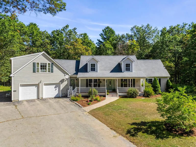 Set on over 13 private acres in beautiful Pelham, this Cape-style home offers comfort, character, and flexibility to suit a multitude of needs! A long cobblestone driveway leads you to a welcoming farmer's porch and a spacious, oversized three-car heated garage (perhaps for a lift?) Inside, the layout works for many lifestyles-whether it's one-floor living with the first-floor primary suite, multigenerational living with the attached LEGAL IN LAW apartment, or a need for multiple work spaces. The fully finished lower level with a walkout is perfect for a home office, teen hangout, or gym. A very large unfinished second floor offers endless potential to expand into a more traditional Cape layout with additional bedrooms or bonus space. Central AC keeps things cool year-round, and the oversized mudroom /sunroom combo adds everyday convenience with first floor laundry to boot! Step outside to enjoy a large yard framed by mature landscaping that borders town land for added privacy. Relax on the front porch or back patio and take in the sights and sounds of nature all around you. It's a place where you can host summer cookouts, explore nearby trails, or simply unwind at the end of a long day. A rare find with space, comfort, and the freedom to live your way. In law can bring in extra income, or great opportunity to create your own "village" at home, and homestead! So many possibilities.