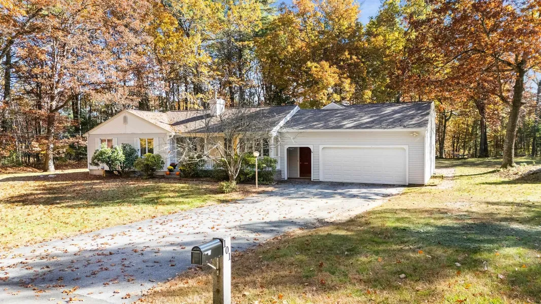 From the road, this breathtaking home surprises and delights with its charm and space. Though designed as a ranch, it offers subtle levels and thoughtful details throughout. Enter through the attached two-car garage—complete with workshop and storage—into a spacious tiled mudroom that leads to a bright, open living area filled with warmth and natural light. It’s the kind of inviting space where you’ll want to spend every day. A few steps up, you’ll find the perfect office nook, while the open kitchen flows into the dining area and cozy living room, centered around a cozy wood stove. Down the hall are four comfortable bedrooms and a full bath. Outside, a detached garage adds even more room for hobbies or storage. The 2.62 double lot is level and invites outdoor fun—explore your own trails, or simply enjoy the peace of the surrounding conservation land where wildlife roams. A luxury chicken coop awaits for those who dream of fresh eggs each morning. The large basement offers potential to finish, already equipped with a cedar closet, washer, dryer, and sink. Set on a spacious corner lot in a prime commuter location, this special home blends comfort, nature, and convenience in perfect harmony. Bonus garage with electricity, raised garden beds, New roof, skylights, and deck are just a few of the recent updates!