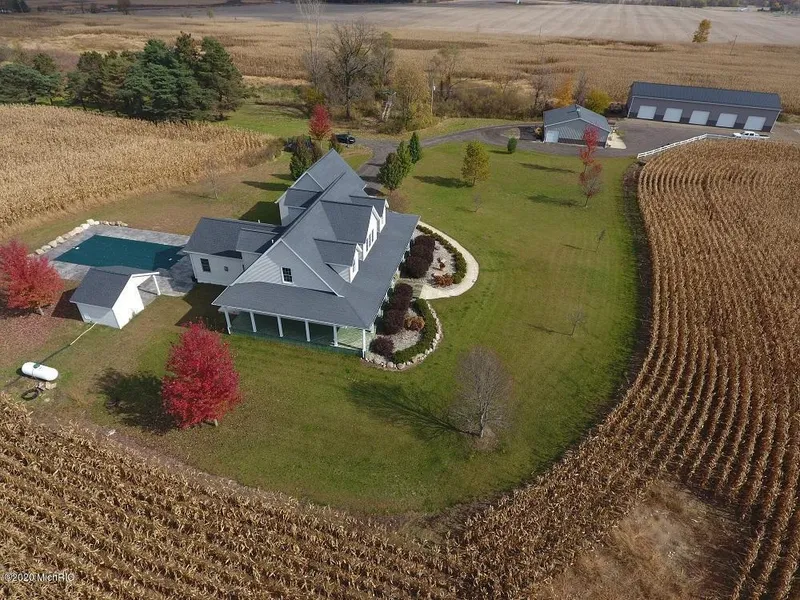 Exquisite country estate on 80 acres in NE Hillsdale County! Easy commute to Jackson, Ann Arbor, or Toledo. 80 acres of farmland and wooded ground, with two ponds (1 spring fed, 1 stocked). Two barns, 40x100 & 40x40. Long, scenic, fenced driveway leads you back to this 5300 sq ft beauty! 4, possible 5 bedrooms, including main floor master suite, formal dining room, and guest quarters in the basement. Built in 2010 - Geothermal heat/AC, in-ground, 18x38 heated pool & pool house. Gorgeous stone fireplace in the family room, hickory flooring throughout, walnut cabinets, Corian countertops, copper farm sink! Extra living room in the basement and private office space. Too much to mention here. Qualified buyers only