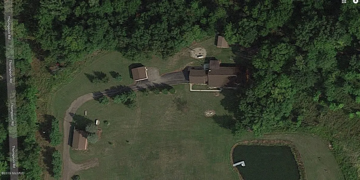 Spectacular View on 27 acres, 3 beds, 2.5 baths, Extra Detached 2 car garage PLUS a 24'x36' Separate Shop for a small business or all your toys. Built in 2003 this 2,298 log home is the full lodge effect with floor to ceiling Michigan field stone fireplace, T&G cathedral ceilings and hardwood floors. A 24'x28' room addition is currently being used as an owner bedroom but could be a family room. Relax on your covered porch overlooking a 3 acre stocked pond and watch the abundance of wildlife roam. Many amenities including 2 wells, 2 septic's, underground gas & power to outbuildings, 2 LP tanks are owned, whole home generator and so much more. Equipment & furniture is negotiable. Great value! (8381)