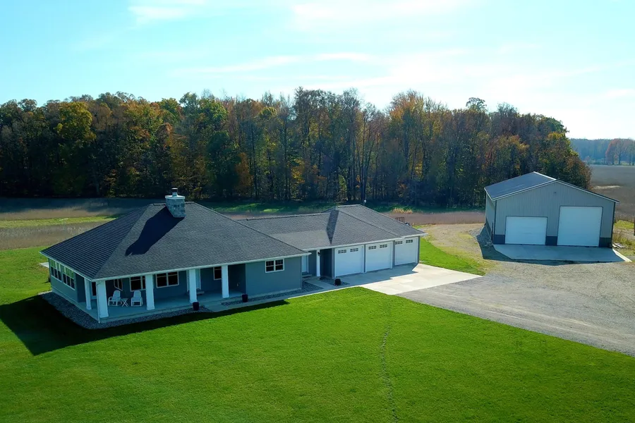 INCREDIBLE CUSTOM BUILD on 10 country acres. You'll appreciate all the features & function this well planned, 4-bedroom, 3 full bath home has to offer. An inviting wrap around porch is absolutely the quintessential spot to just sit a spell and enjoy nature. Inside you find a spacious, open floor plan flooded with natural light and well balanced with an impressive focal point...the stone, double-sided fireplace shared by the dining room. Just off the living room is a charming 3 season room with access to the front porch. Planning ahead, all doorways have 36'' openings and low maintenance flooring throughout. Having enough storage space should never be a problem with the amount of cabinetry the high-end kitchen has to offer, not to mention all the additional cabinetry and closet