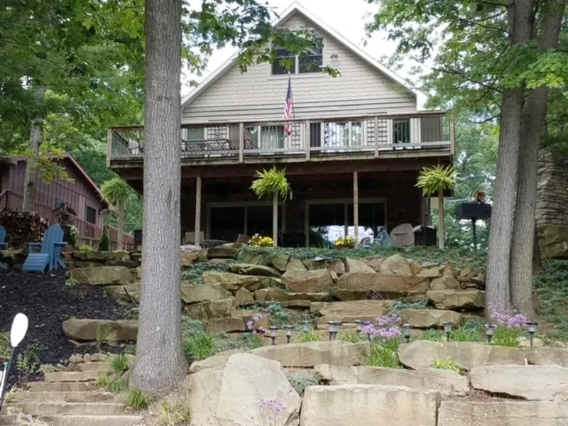 First class Lake Leann home with 2100 sq ft of well thought out and beautifully finished living space. Major updates inside and out. Open floor plan with cherry wood floors, classic cherry cabinets, quartz countertops and stainless steel appliances. Updated Pella windows and doors, Custom blinds. Lower level set up for guest w/ BR, full bath and cool kitchenette. Nice finishes throughout. Plenty of room for outdoor entertainment with 3 lakeside decks & covered cement patio from walkout basement.Recently terraced and landscaped lakefront offers sandstone patio with pizza oven, BBQ grill and firepit. Walkway continues to the lakefront where you'll enjoy a waterfront deck, docking and a small beach area. Generac home backup generator. Tear off roof, gutters & cedar exterior stained in 201