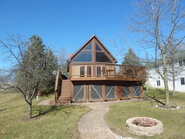 Lake Diane 3BR, 2BA Chalet ready for you to enjoying Lake Life! Furnished to include kitchen contents and linens. Log sided, knotty pine interior with log accents. Stunning stone encased gas fireplace with custom reclaimed mantel. Rustic Log home themed kitchen features unique granite counters. Wood floors on main floor and in large loft accessed via a spiral staircase. Main floor bath has jet tub, shower, front load stacked washer and dryer. Finished basement reached by a spiral staircase has 2BRs, Bath w/shower, living area w/ ping pong table. Head out the basement side door to the lake via stamped concrete walk way to the Sandy Beach for swimming, 2 docks and boat lift to enjoy the 81ft. of water frontage. Under deck storage for the water toys & a fire pit too! 10x20 shed road side, a large buildable back lot holds newer 30x30 Heavy Gauge Steel Building with 12 ft. high door and elect...