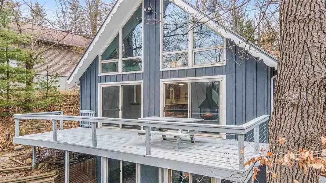 Stunning Mid-Century Modern Lakefront Cottage is an absolute must see! Charm, Character & Love shows throughout, update & feature. You'll love this fabulous, light-filled home set in the treetops of an ultra-low maintenance large lot with spectacular views of Mirror Lake from the master-bedroom, living room, oversized deck, & walk-out lower level. Almost 2,000 sq ft w/open floor plan, kitchen, dining area, living room all boasting beautiful natural hardwood floors, 1st floor bedroom & full bathroom. Spa inspired bathroom showcases a live edge black walnut slab & vessel sink, glass shower & deep-soaking tub. Lakeside patio & dock are great for bonfires or boarding your boat onto this peaceful all sports lake. Less than 30 min to downtown Jackson & under 1hr to Toledo, Lansing, or Ann Arbor