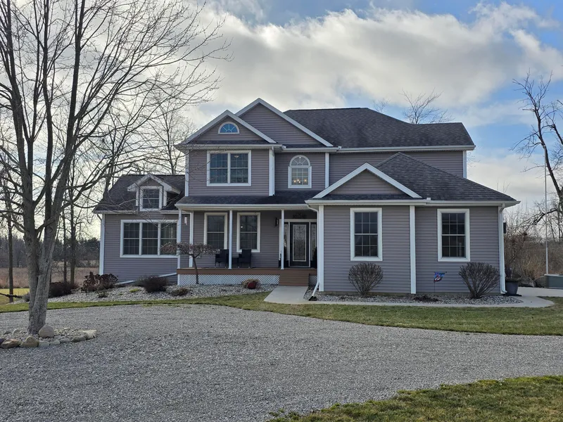 This custom-built home in Hillsdale County, Michigan, offers a perfect blend of aesthetics and functionality on just over five acres of secluded land. With four bedrooms and four bathrooms, it provides ample space for comfortable living. The property boasts a beautiful exterior and interior, making it a remarkable retreat. Whether you're a sun seeker looking to relax by the pool or an avid hunter hoping to tag a Hillsdale big buck, this property has something for everyone. The deck and patio provide great spaces for entertaining, and with French doors opening up to the outside, you can seamlessly merge indoor and outdoor living. The generously sized bedrooms ensure that there's enough space for everyone, and the updated bathrooms add a touch of modern luxury. Additional features like solar panels, a whole-home generator, and a heated attached garage contribute to the home's convenience a...