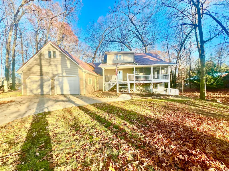 Stunning contemporary cape cod with wonderful architectural details throughout including soaring wood ceilings that gleam in every season. The open floor plan highlights a spectacular wall of windows that bathe the home with natural light. Main floor master & laundry. Full baths on each level, including the lower level walkout that also sports a large living area & two spacious bedrooms. Lower level walkout opens to an inviting patio that is surrounded by woods & remarkable views of nature. New metal roof within the past four years, newer mechanicals & a whole house generator are updates adding tremendous value to this property. A huge four car garage features a heated man cave that will truly be appreciated, with a huge unfinished area above the garage just waiting for your ideas! (9560)