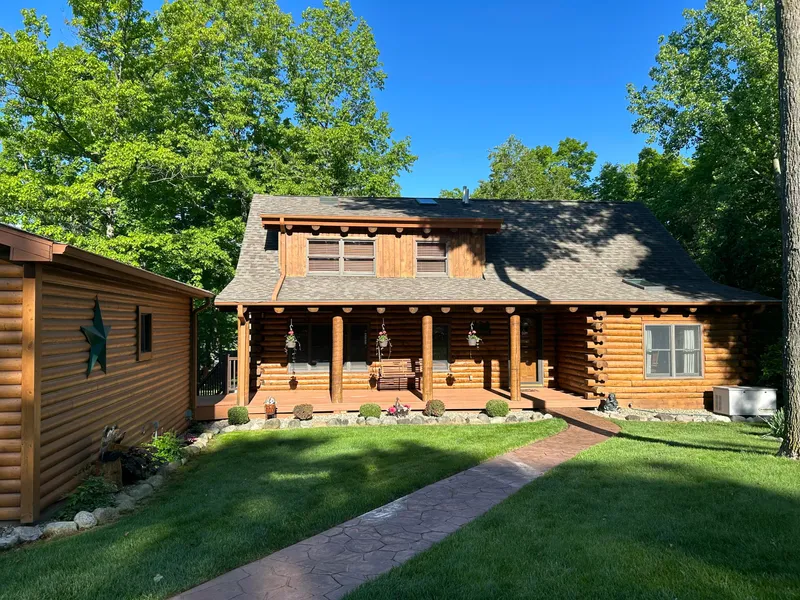 OPEN HOUSE SUNDAY 7/13/2025 2PM-4PM. LAKE DIANE Lake Front Enchanting log home has gorgeous Stone gas log Fireplace, numerous updates (too many to mention; list on file), tree studded lot and a Sandy Beach. You will absolutely love the feel of this wonderful log home enhanced by hickory and pine wood flooring and natural light via multiple skylights. Spacious kitchen has beautiful updated Hickory Cabinets with Granite counters and under sink R. O. system; appliances are included. Large connecting dinning area for all of your gatherings surrounded by the warmth of wood. Large living room has a cozy feel thanks to the log walls and stunning fireplace. Two sliders lead to the full length newer (2020) Azek deck with gates that looks out over the lush lawn with lake fed sprinkler system (that also supports yard road side),through the trees to 118' of water frontage, sandy beach with retaining wall surround, dock and shed. From living room Log steps continue the magic with a vaulted ceiling containing sky lights, loft with Mr. Cool mini split for providing nuanced comfort beyond the 2014 updated furnace and a/c, hall with full 2012 updated bath and private bedroom (window ac remains for those that like it extra cool). Walkout basement contains living area, wet bar and inviting main bedroom retreat with updated bath/ w/d and sliders providing brick paver patio access. Last but not least Front Porch looks out over the landscape with enhanced circle drive across at the woods. Cabinetry and counters have been updated; all counters are granite. Guardian Automatic propane powered generator. Garage log sided and Home was corn blasted and stained in 2012 with continued maintenance sealing for longevity/preservation. New Roof Shingles 2015. What a lovely enhanced Lake Log Home Retreat ready and waiting for you; fully furnished to include; furniture, rugs, 2 TVs, lamps and some pictures. Visit to appreciate all this property has to offer. Lake Diane is 400 ac all sports lake with central sewer, Lakeside carryout, restaurant and community center with numerous events. Company makes no warranty about the contents of this data. It is the responsibility of all interested parties to satisfy themselves as to age, sizes, tax and homestead information. Tax amounts may change for the buyer following a closed transaction.