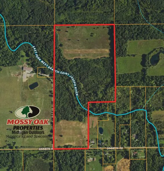 MORE ACREAGE AVALIABLE! Discover a serene retreat with this 67+/- acre property on Dimmers Road, just south of Hillsdale, MI. Featuring 250 foot of road frontage, this land offers potential building sites and a vast, rolling landscape. A branch of the St. Joseph River winds through the property, attracting abundant wildlife and providing excellent hunting opportunities. Perfect for camping and outdoor recreation, this property is a nature lover's dream.