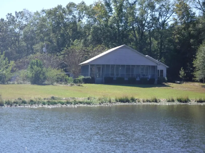 Developed as a weekend retreat, this open and wooded property has a beautiful home overlooking a large pond. Located far from the road, the long driveway passes two barns with horse stalls, carport/storage shed and fenced horse pastures. Built in 1997 with a master bedroom suite added at a later date, this 2 bedroom, 2 1/2 bath home is paneled in tongue and groove yellow pine with cypress flooring. A 600 square foot screened porch wraps around two sides of the home with views of the pond, barns and pastures. The northern end of the property contains very secluded fields and woods and would make a nice hunting setup.